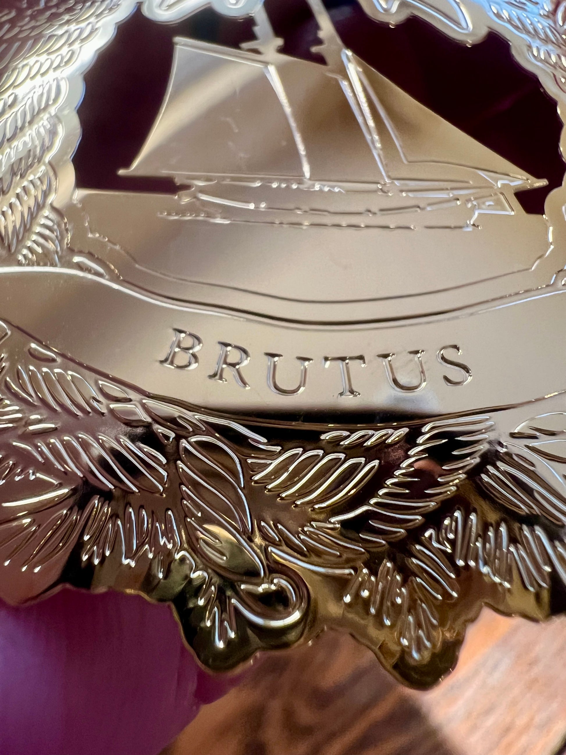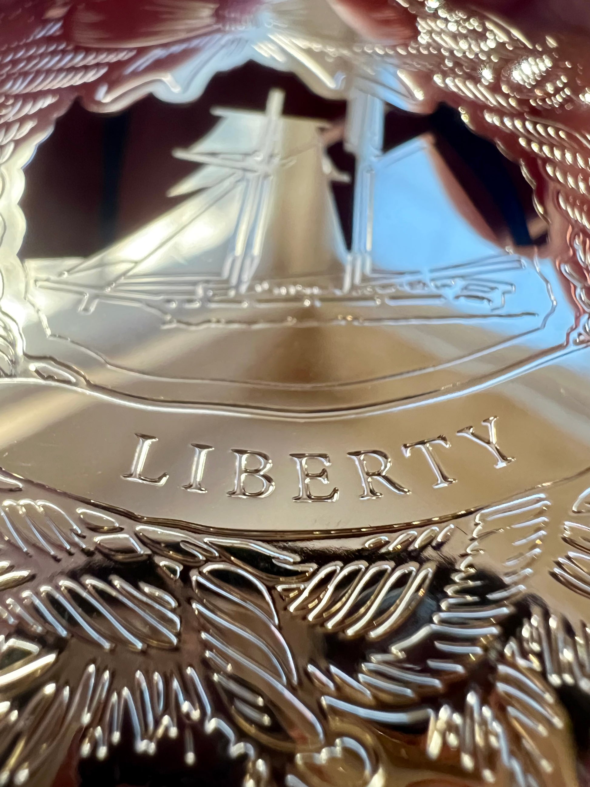 These are truly something special. Boughs of holly and a bow surround the Invincible, Brutus, Liberty and Independence, depicted in four elegant laser cut tree ornaments. Each comes in a protective pouch, emblazoned with the Texas Navy Association logo, to protect these beauties in storage between Christmas seasons.
